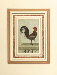 ビュフォンの大作「鳥類誌」(プランシュ・ザンリュミネ)の図版を制作し、18世紀フランスの博物画家として最も高名だったマルティネ(1731年−1800年)のこのオクターボ版(八つ折判)の可愛らしい「鳥類誌」は、同時期に作られましたがほとんどの鳥類学書誌から記録が漏れている希少なフォリオ版(二つ折判)「鳥類誌」とほぼ同じ装飾スタイルで制作されているので、そのフォリオ版と対になる作品であると考えられます。 両方とも背景となる建物や止まり木など、他の鳥類誌には無い独特な装飾性があり、小さな作品ですが彩色にも念が入っているのが分かります。 オクターボ版には記述がありませんが、彫版の繊細さから類推すると、おそらくフォリオ版と同様に息子のアレクサンドル・マルティネが彫版に関わっていたのではないかと思われます。