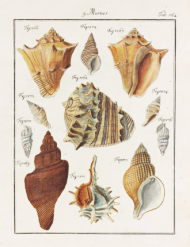 ベルリンで幾つかの医学や自然科学の協会を立ち上げるなどして精力的に活躍していた医者で貝類学者のマルティニ(1729−78)は全ての貝類を彩色図版で紹介する初の図鑑を出版するという実際的には不可能とも言える野望を懐きます。 マルティニは最初の3巻を出版したところで亡くなってしまいますが、デンマーク出身の牧師で貝類学者であったケムニッツ(1730−1800)がその後を引き継ぎ、8巻を追加し、「新分類貝類標本」を完成させました。